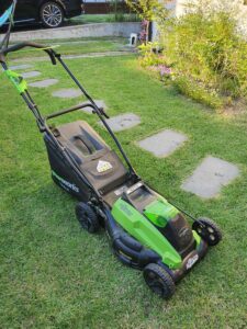 디월트 예초기로 마당의 모서리 부분 및 나무 및을 깔끔하게 정리를 하고 다음으로 4발 달린 잔디 기계를 돌리기 시작하죠.