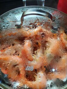뚜껑을 덮고 12분 동안 쪄서 이제 먹으면 됩니다. 맛있게 잘 일었어요. 물론, 양식일 거라고 생각하는데요. 오래 나온 대하이고, 살아있었던 대하여서 너무 맛있는 것 같습니다. 고소하기까지도 합니다.