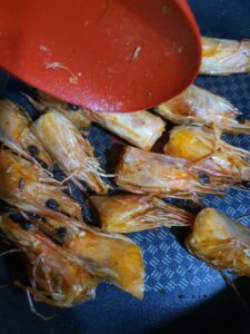 대하 대가리를 싹둑싹둑해서 버터와 함께 볶아 줍니다. 그러면 정말 맛있어요. 대하는 거의 버릴 게 없는 것 같습니다.