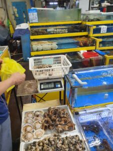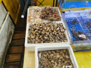 많은 수산물들이 있었지만 수산물은 싱싱할 때 먹어야 한다는 신념으로 소라까지만 사기로 결정하였습니다. 그리고 재빨리 농수산물 시장을 빠져나왔습니다. 코로나 19가 너무 창궐하니 밖에 나가는 것도 애매하더라고요..