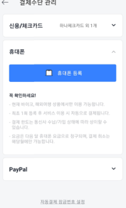 결재 방법은 카카오 T 앱의 내 정보를 통하여 설정을 할 수있습니다. 내정보 -> 결제수단 관리로 들어가게 되면 신용/체크카드를 선택하여 카드를 등록할 수 있고요. 아래 휴대폰은 휴대폰을 등록하여 휴대폰 사용료에 추가하여 부가하게 됩니다.