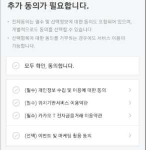 추가 동의 하기카카오 T 앱을 설치하셨다면 택시를 선택 이후에 지도 화면을 보면 나의 위치가 나옵니다.