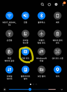 보통 교통비는 NFC를 이용하여 지불이 됩니다. 따라 NFC를 켜야 하는데요 NFC의 기능 중에는 기본 모드와 카드 모드가 존재를 합니다. 휴대폰 화면에서 위에서 아래로 내리면 확인할 수 있으며, 또는 휴대폰의 설정에 가셔서 연결로 들어가게 되면 NFC를 설정할 수가 있습니다. 한번 더 터치하셔서 카드 모드로 전환하세요.