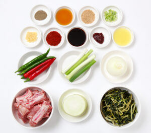주재료로는 삶은 시래기 300g과 등갈비 840g이 필요합니다.