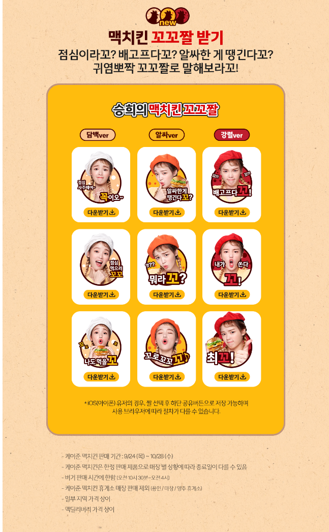 참여 방법 : 1.맥치킨돌 승희의 챌린지 가이드 영상을 보고, 2.맥치킨돌 챌린지 스티커와 맥치킨 꼬꼬송 공식 음원으 사용하여 표정 묘사 영상 촬영, 3. 맥치킨돌챌린지, 맥도날드에 해시태그와 함께 영상 업로드