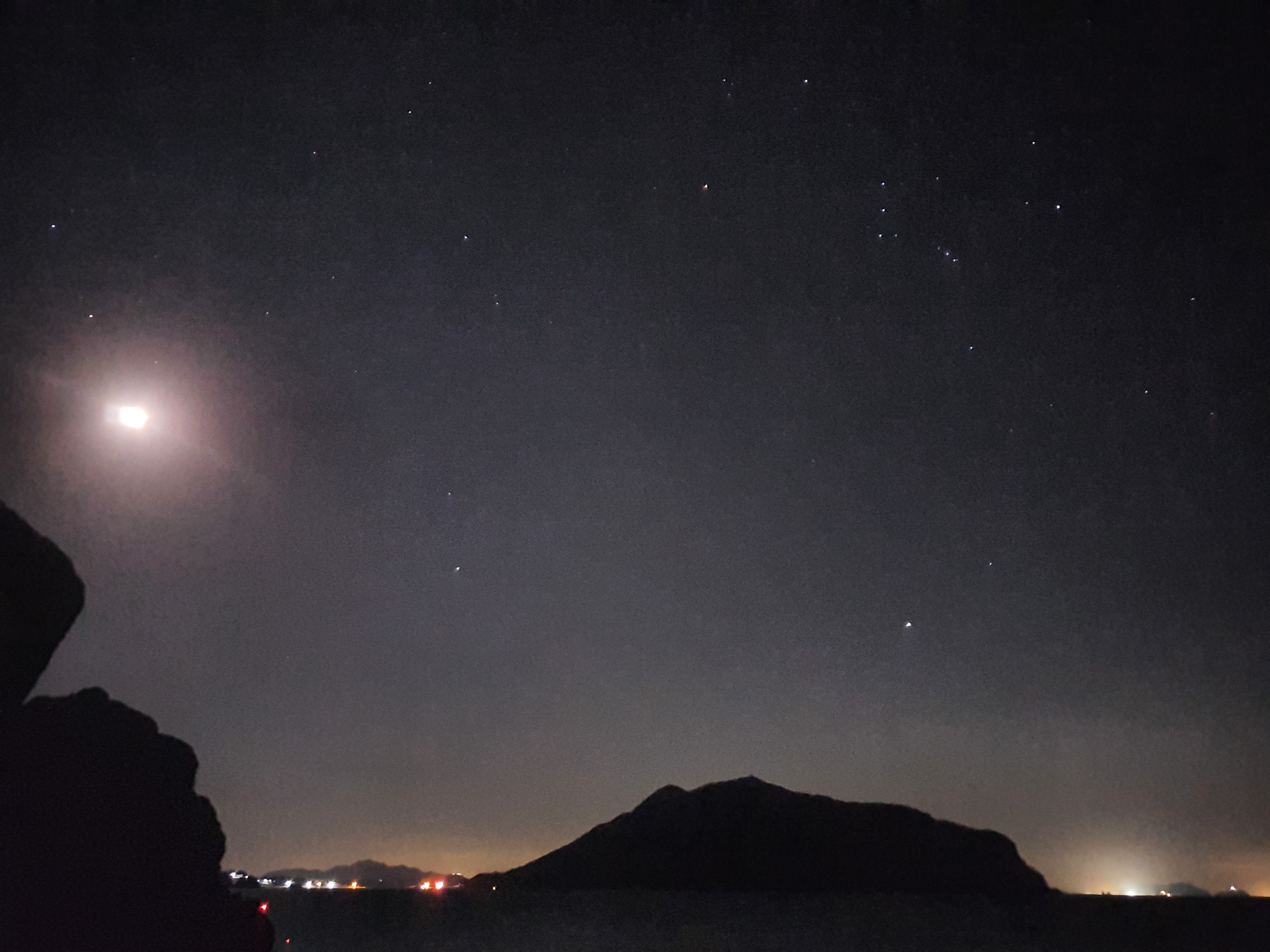 잠시 갈치낚시가 안 되는 틈을 타서 하늘의 별을 찍어 찍어 보았습니다. 제 폰은 Galaxy Note 10 Plus입니다. 하늘에 별도 찍혀서 신기해 하긴 했는데요. 확연히 별도 보이네요... 예전에 galaxy j6를 사용했는데요. 카메라에 담지도 못했었거든요. 아, 그리고 텐트도 이쁘게 찍혔죠? 갈치 잡은 김에 사진도 한방 했습니다. 얼굴은 가렸습니다.^^