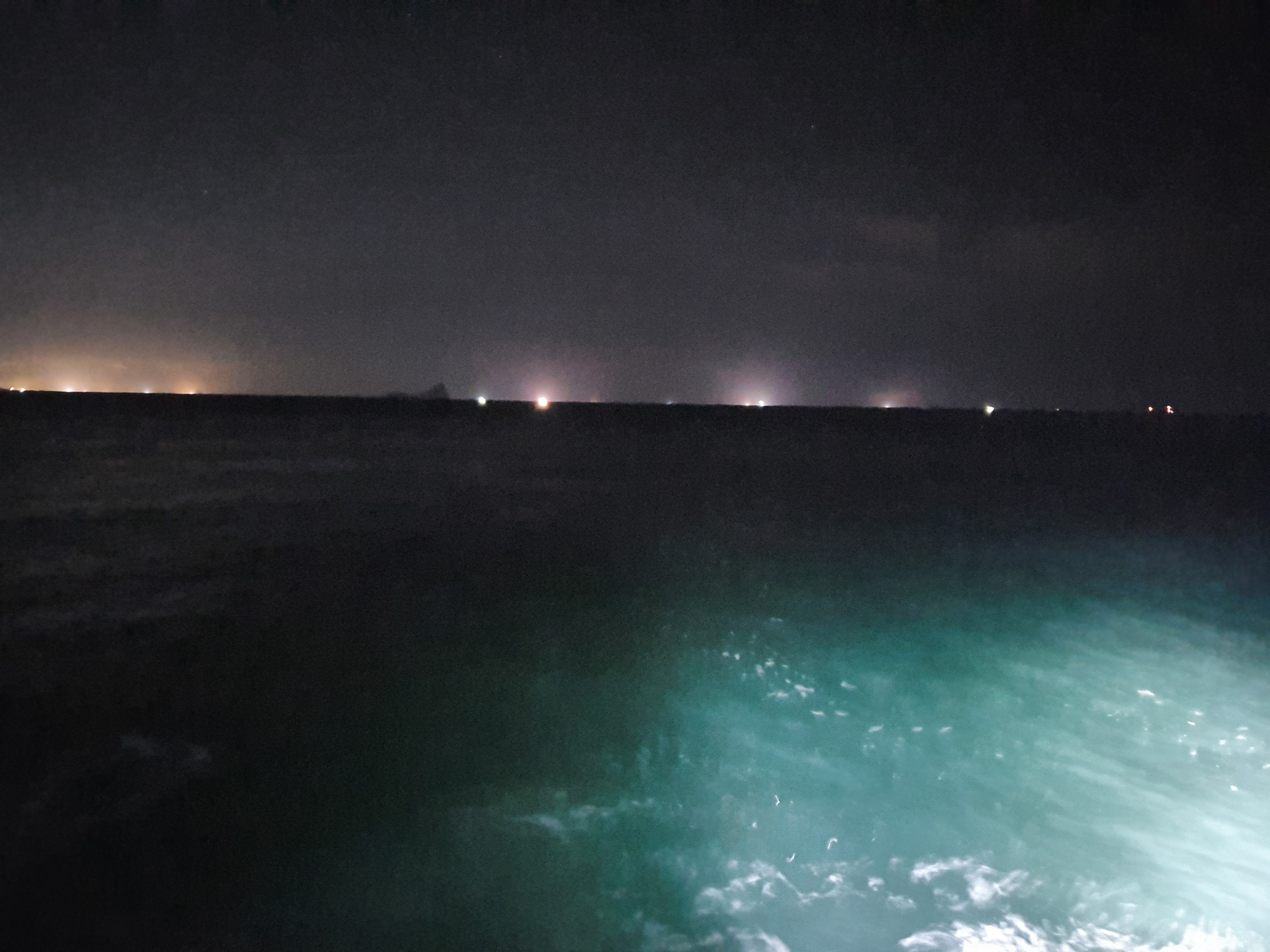 저 멀리에서는 낚싯배들이 불을 켜고 갈치 낚시를 하고 있네요. 저배에도 낚시군들이 갈치 낚시를 하고 있겠죠..