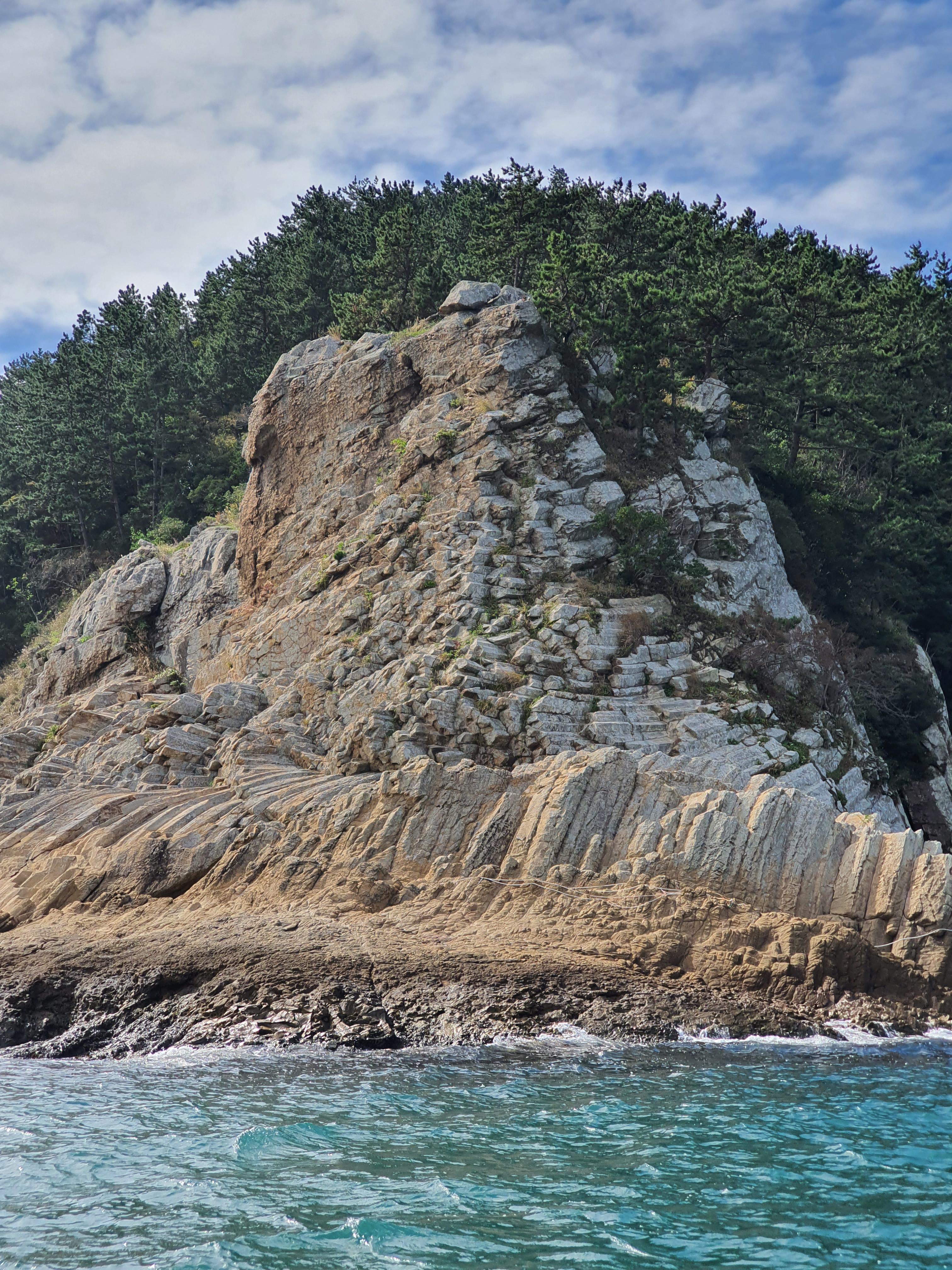 경남 통영의 주상절리라고 할 수 있는 바위죠! 제주도의 주상절리 못지않게 이쁩니다. 여기도 육각형 모양으로 바위들이 금이 가있습니다.