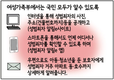 여성 가족부에서는 11월 25일 부터 성범죄자 신상정보를 모바일로 고지를 실시한다고 밝혔습니다. 올해 말까지는 시범운영 기간으로 우편과 모바일을 병행하여 실시하고, 내년부터는 모바일 고지서 미열람자에 한해 우편 고지서를 발송할 예정이라고 밝혔습니다.