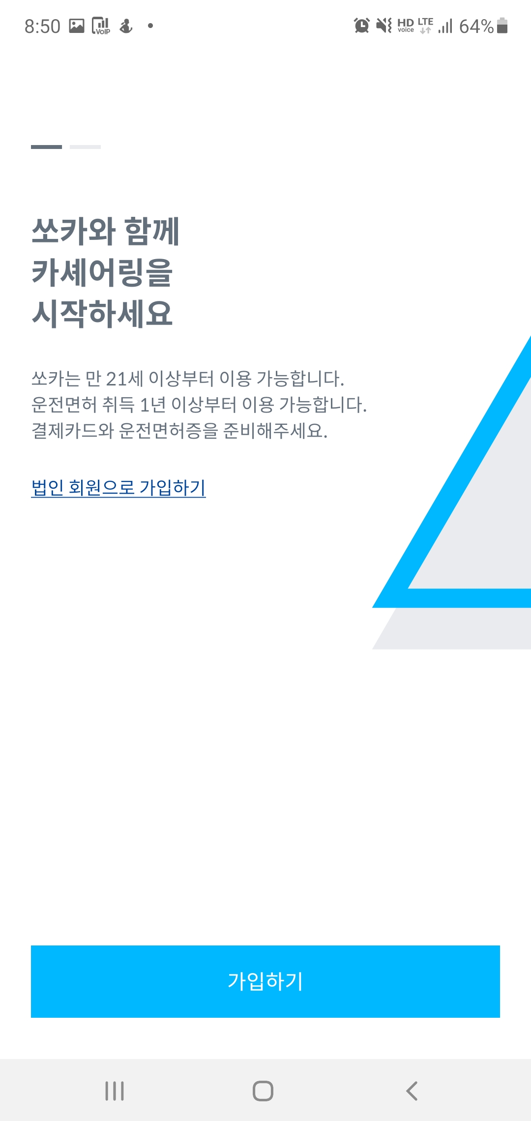 먼저 알아 두어야 할 사항은 운전면허를 취득했다고 이용할 수 있는 것은 아니고, 만 21세 이상부터 쏘카를 이용할 수 있습니다. 그리고 운전면허를 취득한 이후 1년 이상 경과하여야 하며, 결재 카드가 있어야 하니, 참고하시기 바랍니다.