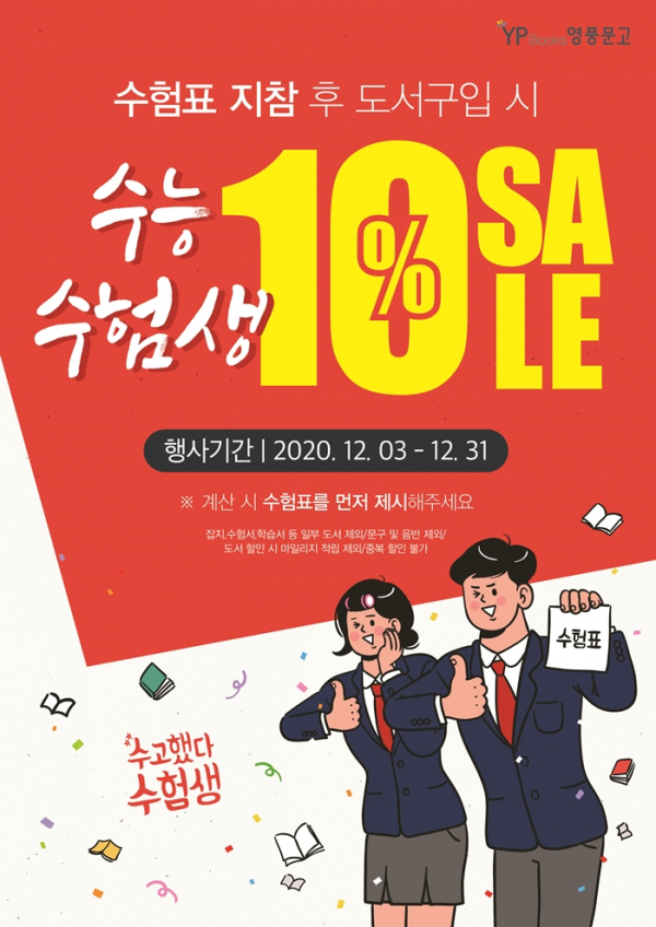 수험표 제출 시에 신상품 20% 할인 들어갑니다.