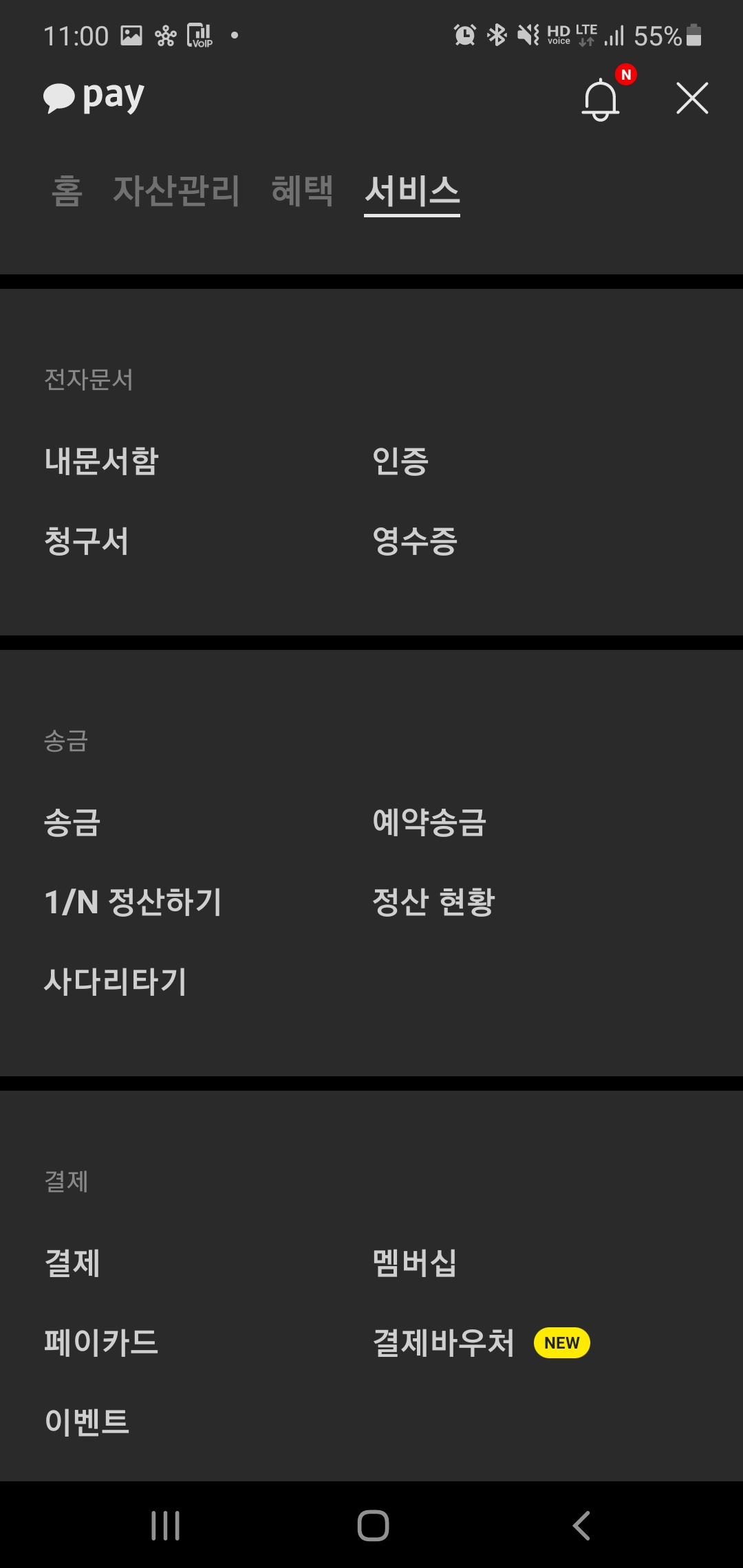서비스를 눌러 다음 화면으로 넘어갑니다.