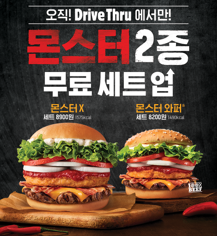 몬스터 X 세트 : 8900원, 몬스터 와퍼세트 : 8200원
