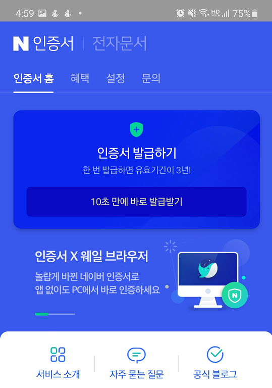 간단하게 이용할 수 있는 네이버 인증서 발급입니다.