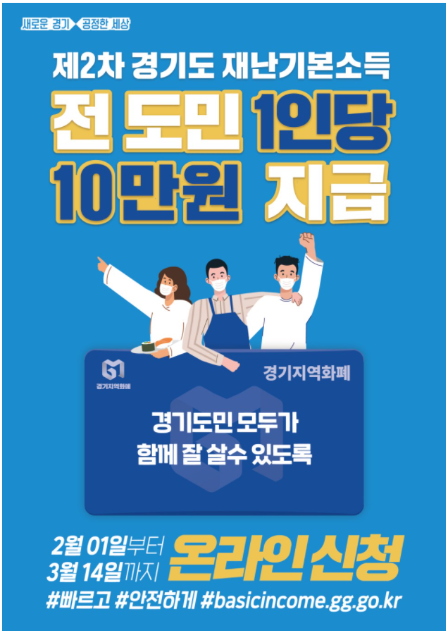 경기도 재난 기본소득 홈페이지는 https://basicincome.gg.go.kr에서 신청 가능하다고 합니다. 홈페이지 오픈 시간은 2월 1일 아침 9시부터 시작합니다.