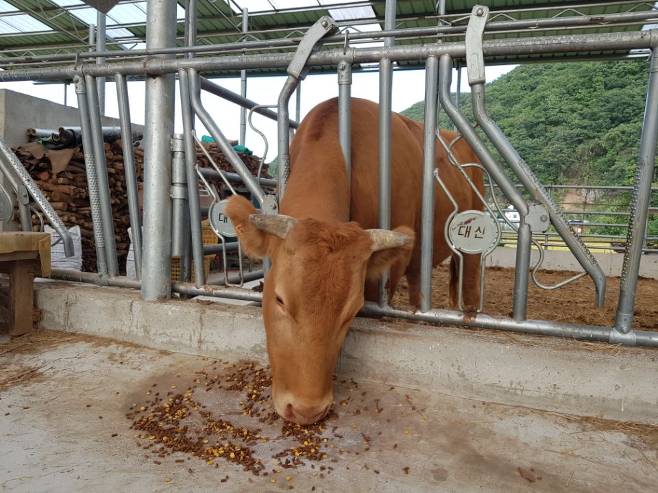 껍질이 황변하고 씨알이 굳어져서 성숙한 뒤인 8월 하순부터 9월 중순에 수확하여 사료로 사용합니다