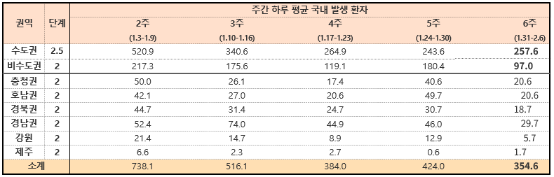 첫 번째, 1주간 환자 발생 추이 등 분석 결과, 수도권 지역 감소세 정체