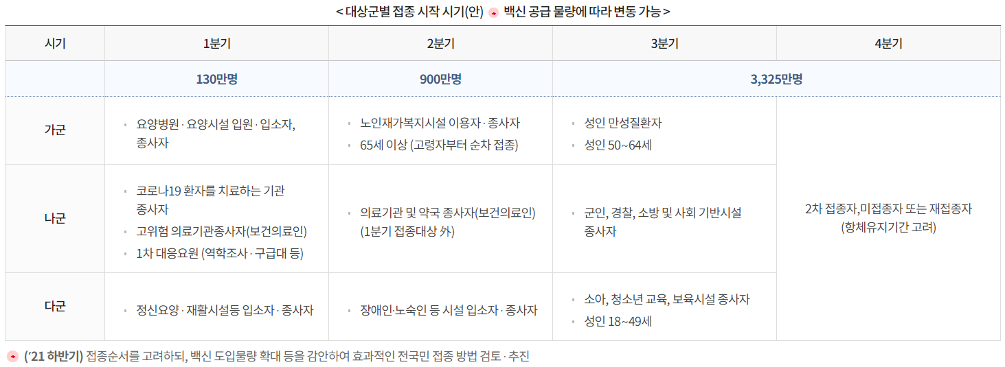 접종 순서, 백신 공급 상황에 따라 결정한다고 합니다.