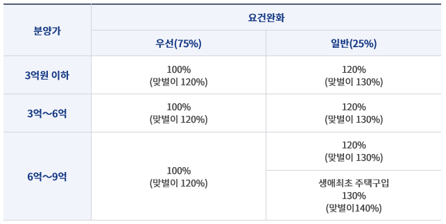 소득기준으로는 국민주택이 도시근로자 월평균 소득 100% 유지하되 민영 주택은 도시근로자 월평 균 소득 130% 이하까지 확대한다고 합니다. 도시근로자 월평균 소득 130% : 2인 가구 569만 원, 3인 가구 기준 731만 원, 4인 가구 기준 809만 원(19년 기준, 20년 적용)