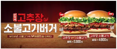 언양식 고추장 소불고기 버거 행사는 2021년 1월 4일부터 쭈~~ 욱 진행하고 있습니다. 고추장 버섯 불고기 세트는 5300원, 고추장 소불고기 세트는 4900원입니다.