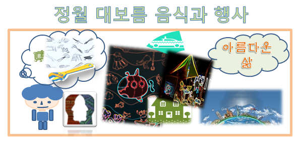 정월 대보름 행사는 마을에서는 아주 큰 행사가 되었습니다. 달집을 마을 사람들이 지어 불얼 태우고 올 한 해 풍년과 행복을 비는 행사였으며, 가장 유명한 줄다리기와 차전놀이 등이 있었고, 동네 아이들은 쥐불놀이를 하곤 하였습니다.