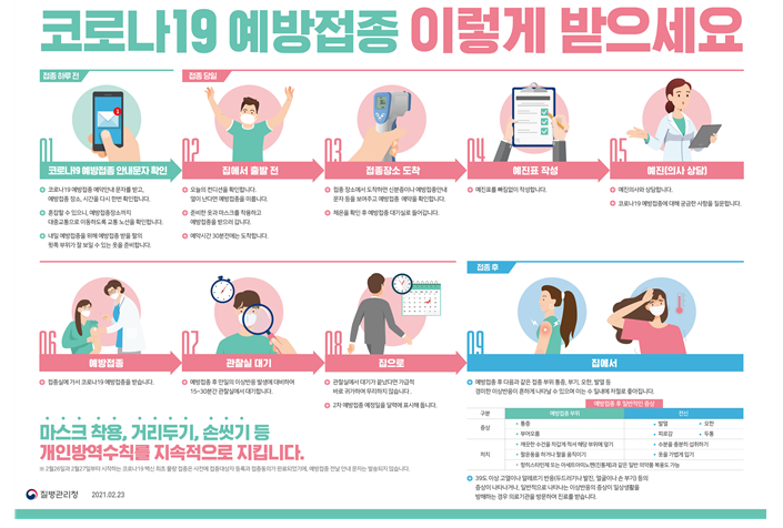 코로나19 예방접종은 어떻게 진행이 되는지 확인해보도록 하겠습니다.