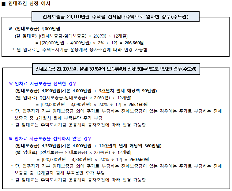 임대 조건 산정 예시 참고하셔서 바랍니다.