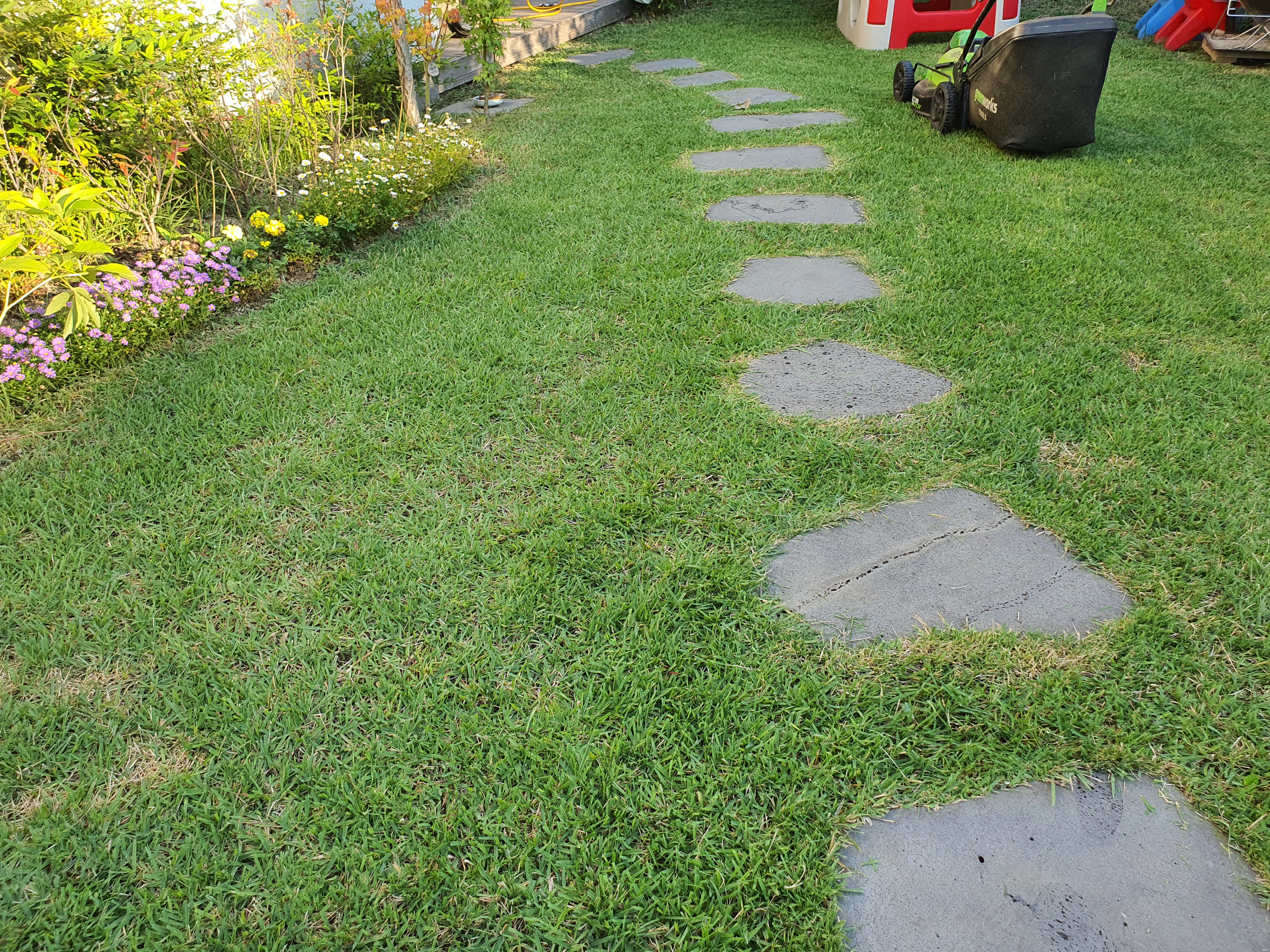 멘발로 잔디를 밟아보는 것도 좋습니다. 처음에는 느낌이 이상하지만, 한번 두번 느껴보셔도 좋을 것 같네요. 비가 올때면 디딤돌을 딛고 마당을 거슬러 다는 것도 좋습니다.
