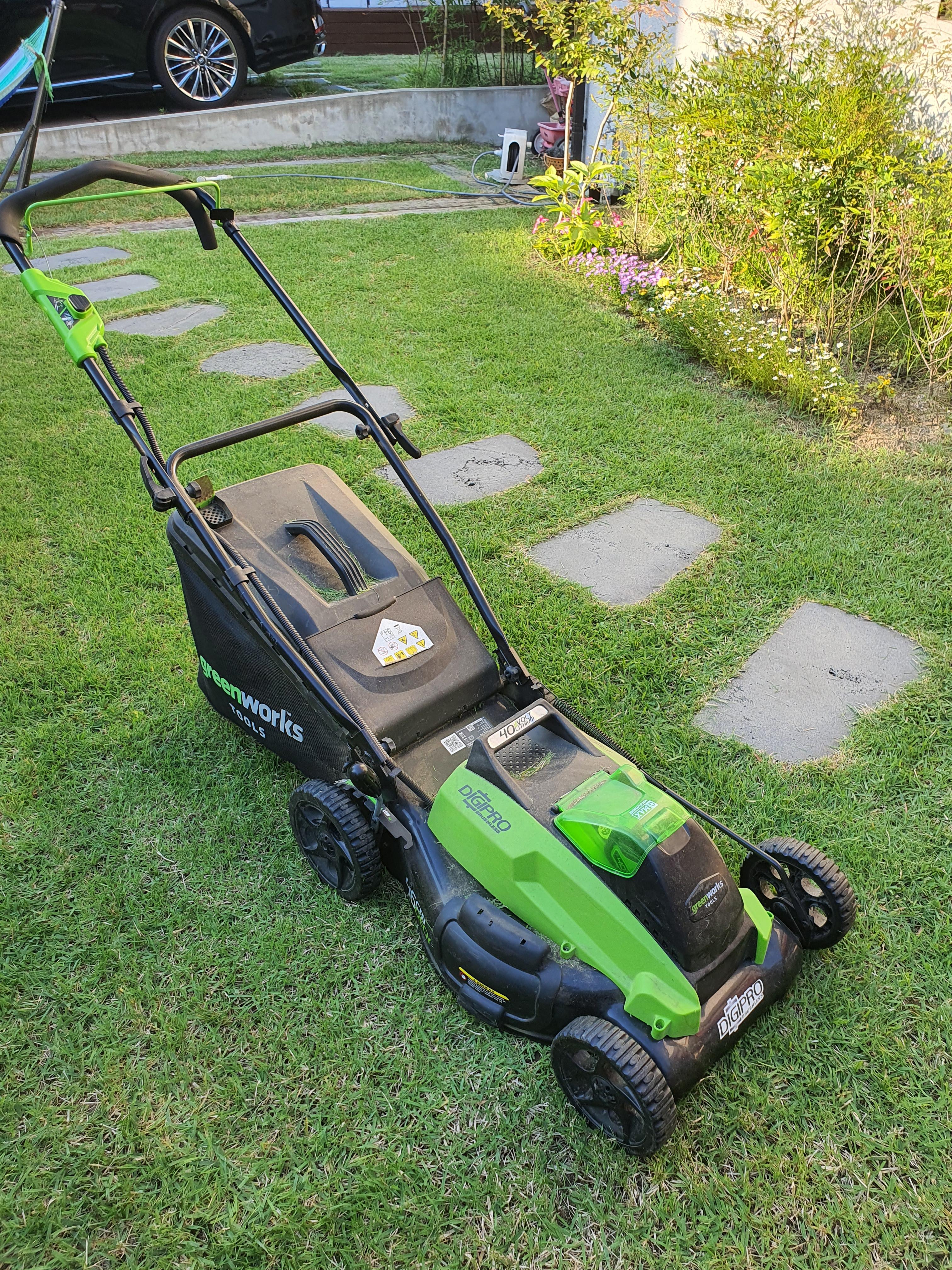 잔디깍는기계,그린웍스는 마을분들이 각각 돈을 내서 공용으로 구매를 하였습니다. 가격은 50만원대 였던것 같습니다. 마을 주민 5명이 돈을 모아 구매을 하였습니다. 50만원 정도 하였으니, 10만정도 냈던것 같네요. 동네 형님분이 구매를 지행하여 공용으로 사용하고 있습니다. 그리고 최근에는 마을 전체 공용사용으로 커뮤니티센터에 기부하여 필요할 때 가져와 사용을 하고 있습니다.
