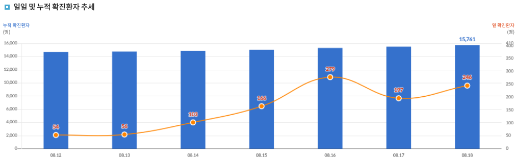 휴가시즌과 집회등 모임들이 늘어나면서 증가되고 있어, 감염자 수가 점차 증가하고 있습니다. 이번에 화제가 된 교회 및 집에서 다수의 확인자가 발생하여 비상이 걸렸죠.