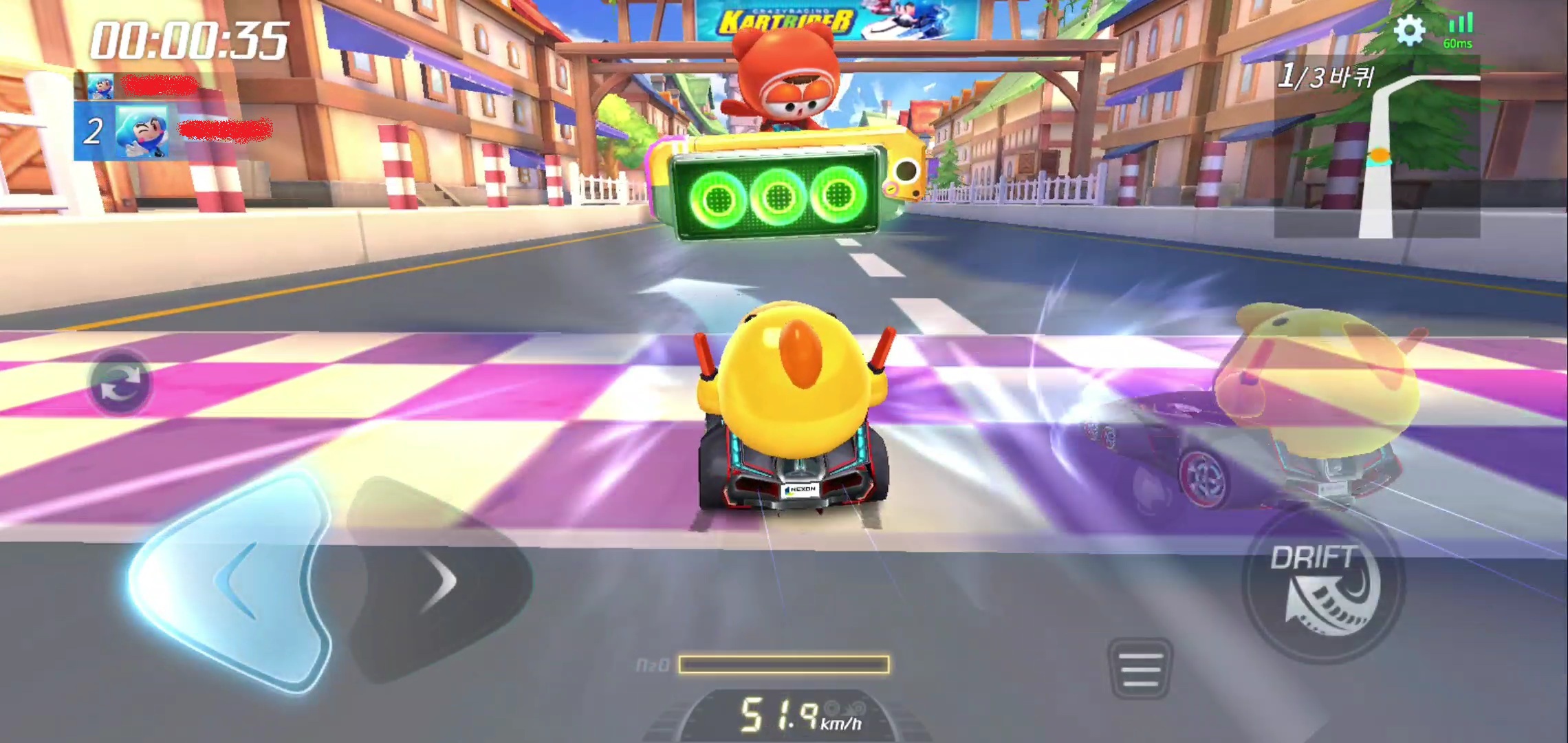 컴퓨터에서는 타이밍을 맞춰야만 했던 출발 부스터(Turbo Start)를, 모바일 카트라이더 러시 플러스에서는 그 자리를 계속 터치만 하면 되기 때문에 아주 간편하게 부스터를 사용할 수 있습니다. 그래서 남들보다 늦게 출발을 하지 않아 되어서 안심이 됩니다.