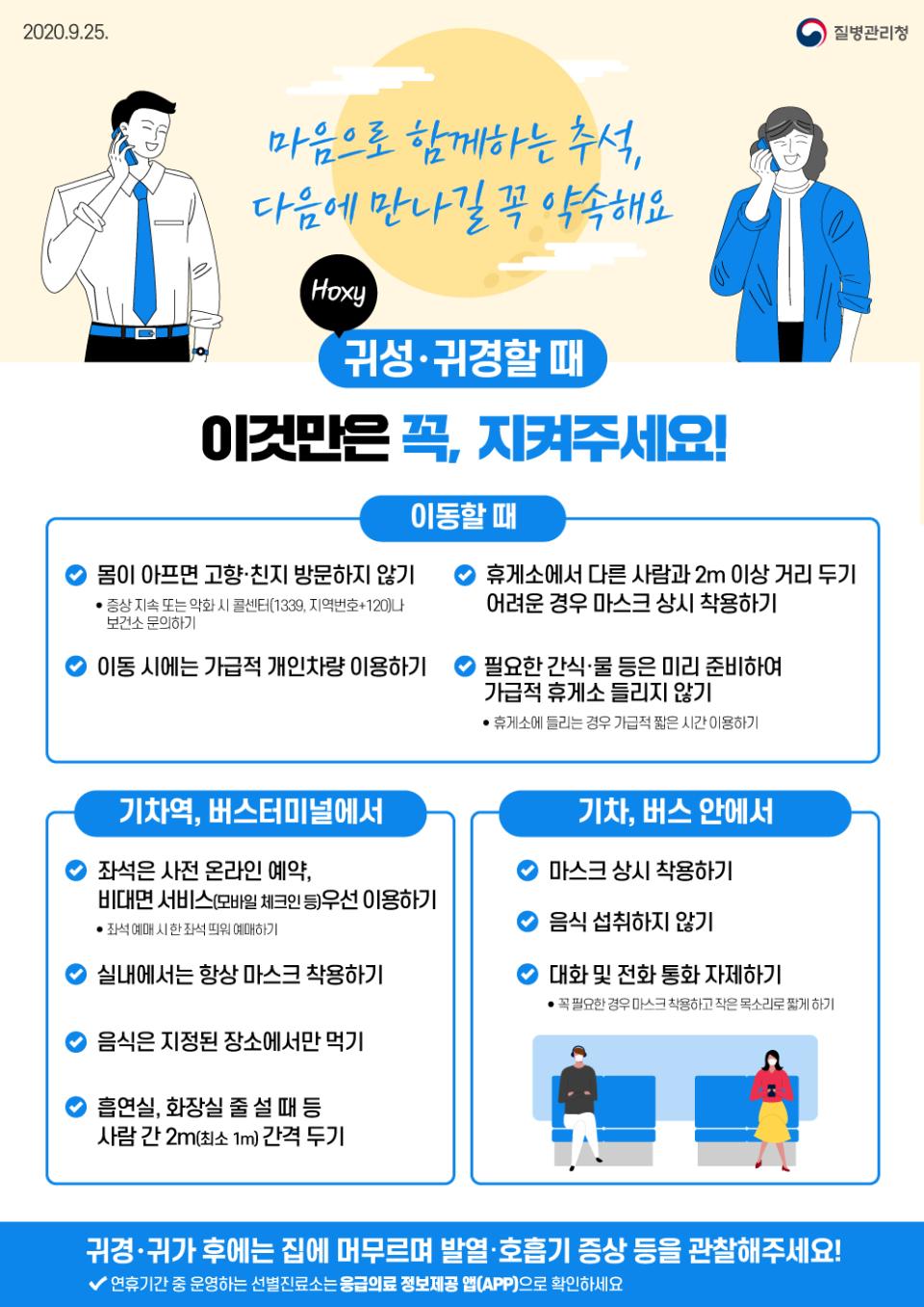 안녕하세요. Hoo^2입니다. 이번 2020 추석 연휴기간도안 공향 방문과 여행 등으로 국민들의 이동이 많아질 것을 예상하고, 코로나 19 감염에 대한 확산 우려가 크지고 있어 이에 대한 대책을 마련하고 있다고 합니다.
